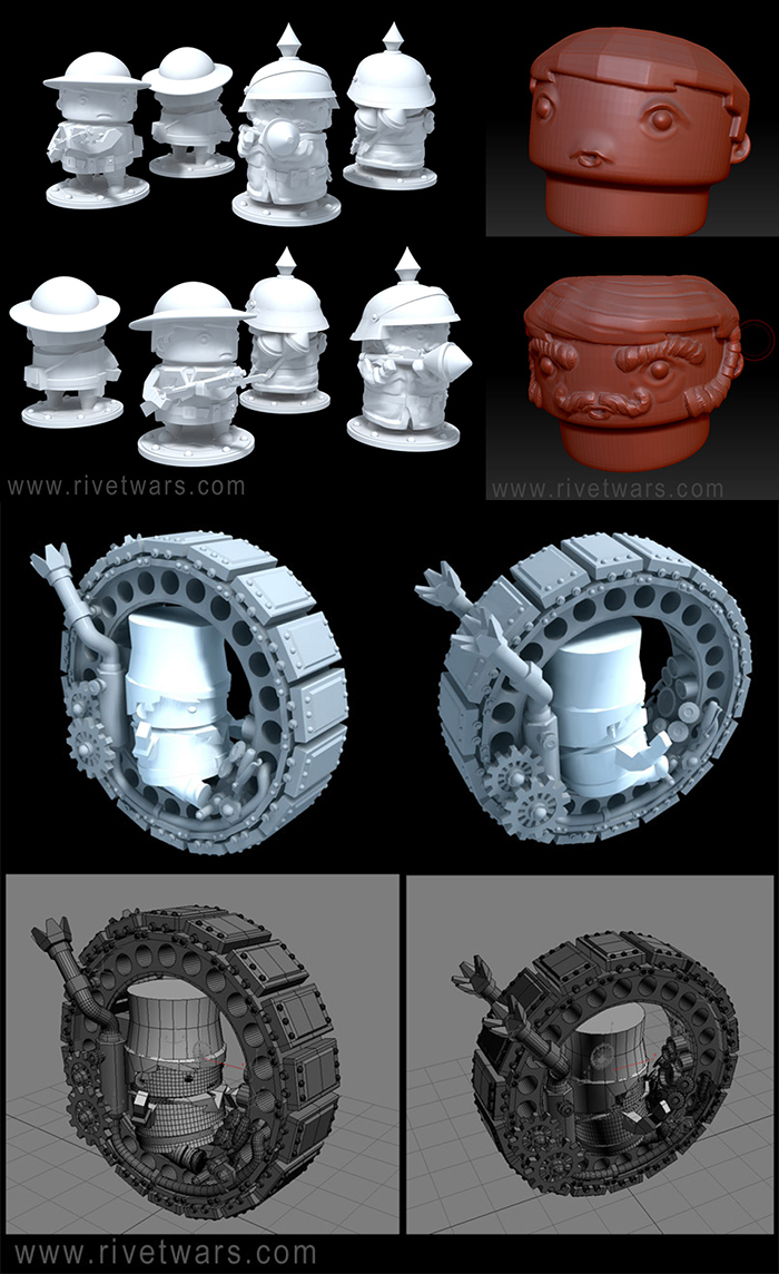 “I’ve been playing around with sculpts for the grunts. I wanted to really differentiate the blight from the allies so the blight are more anti-tank/armor guys with rocket launchers similar to the German panzer foust. The blight will also sport some sweet facial hair and more ceremonial looking outfits.”