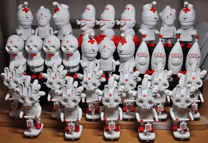 Ukrainian resin artist Patient No.6 has just revealed that his latest batch of weird and wonderful creations, the “White and Red” figures, have received full funding (twice over to be precise!) through Indiegogo, and are currently in the final stages of production. Anyone who missed out on the campaign will be glad to know that due to the project’s success, Patient No.6 has been able to make a surplus of the 6 5″ resin figures, which can now be found on his shop. Featuring a mixture of both new and well known faces including Patient No.6 in Car, Gagarin in Rocket and the Doctor, the beautifully cast figures are available for $56 each, or just $286 for the set…