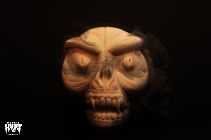 Australian duo Double Haunt recently teased a rather tentative image of their latest resin release featuring a set of fangs… well today we can reveal the figure’s full head sculpt in all its glory! Slightly differing from their usual Neo-Traditional approach, the piece still appears to hold their signature tattoo inspired aesthetic, although from the scales it would appear that it will be borrowing from the classic Japanese style this time around. Details on pricing and release dates are still to be confirmed, so be sure to stay locked on the Double Haunt blog for more information. Anyone interested in picking up any of the couple’s earlier work will be glad to know that the newly refurbished store is still stocking a wide variety of pieces, including our favourite, the adorable Mr Spook…