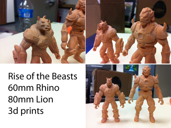 After months of trials and tribulations including a fully backed yet cancelled Kickstater campaign (find out more here), plus a slew of production issues, the promising “Rise of the Beasts” series 1 from Little Rubber Guys‘ Jon Karis should finally be seeing the light of day soon! Primarily influenced by the 1986 Battle Beast line, the ROTBs are to be cast in hard wearing PVC, will come with similar articulation to the 80′s classics, and are also set feature the usual accessories including swords, axes and maces. Unfortunately, production shots sent from the factory of the line’s first figure, the Gold Lion, have revealed that although the sculpt is pretty much spot on, both arms and head are wildly disproportionate to the body… a new 3D print has been readied (pictured above), that will be moulded, reproduced and articulated before heading back to the factory in China soon… Alongside the 80mm Gold Lion, Jon has also been working on 2 new figures on a smaller scale, the 60mm Rhino, and an as yet unrevealed sidekick. These will also be making their way into production soon (as long as Jon can secure the original $25-$30 price point), so be sure to check back soon as we bring you more details on this awesome looking series…