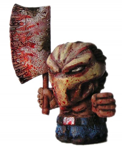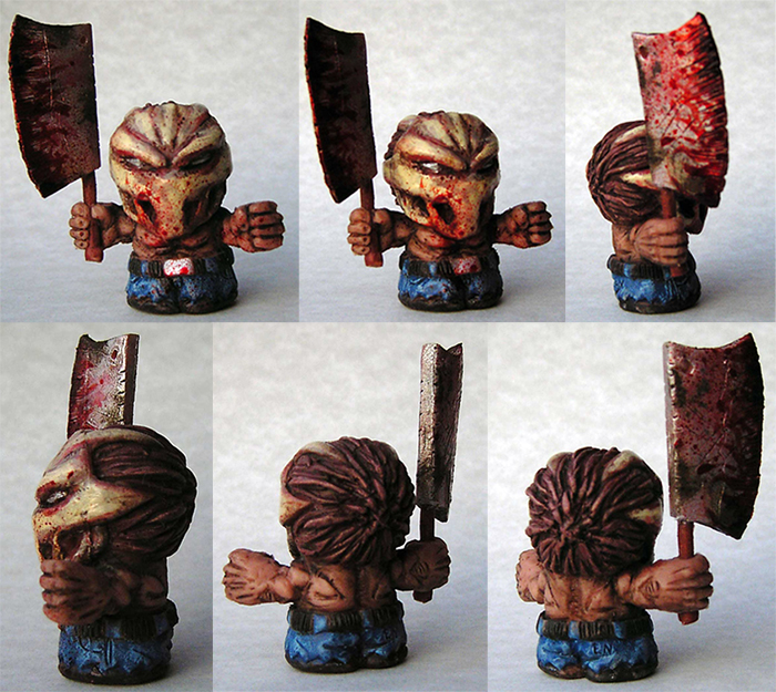 In lieu of securing Eric Nilla’s SD Splatterhouse Rick for a MAN-E-TOYS exclusive (find out more here), we’ve decided to take a little look at the awesome custom I.Designs (Imperfecz Toys) created a while back. Fetching a hefty $50 on a recent Litte Rubber Guys auction thread, I.Designs has stayed true to the original video game inspiration, decking Rick out in meticulously detailed blue jeans, a suitably stained and weathered meat cleaver… plus the all important blood splattered hockey mask! Standing at around 1″ tall, the authentic keshi-style rubber figure will be landing in our store over the next month (price tbc), but if you can’t wait (or are looking for different colours!), head over to the dedicated LRG thread here. Expect more news on our Nilla x Niku exclusives soon…