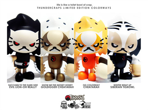 Just in time for the upcoming Anime Expo (June 29th – July 2nd), Rotobox Vinyl Anatomica are proud to present their latest wave of Thundercraps figures, this time coming in a 3-piece box set! Originally previewed here way back in January, the final roster has been confirmed as Evil Lion-Oh Really, OG Cheatarah, Siberian Tigrowl and Goldigger Cheatarah. As you can guess by the amount of figures that have been revealed, one of these guys will be a chase… well, we can confirm that out of the 300 box sets that will be heading to retail, 100 of them will contain the Goldigger variant of Cheatarah, whilst the remaining 200 will feature the OG. Standing at around 4″ each, the vinyl figures will be officially released after the Anime Expo, priced at $45 per pack…
