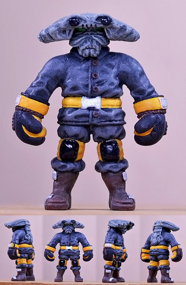 Even with the stunning “Bra(v)ery” custom Bambaboss featuring here just yesterday, we couldn’t resist sharing with you yet another breathtaking project from Singapore based artist Daniel Yu, the Rough & Tumble Crawdad Kid! Based on Daniel’s winning (and in our opinion, best) OMFG! series 1 design, the figure has been expertly modified using a mixture of epoxy putty and acrylic paints… just check out the level of detail on the boxing gloves, truly astounding! Unfortunately, this guy was a one-off custom created for Singapore gallery Flab Slab, so if you’re interested in picking up a similar piece be sure to hit up Daniel through his blog here…