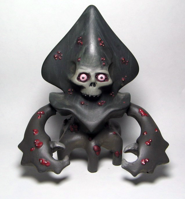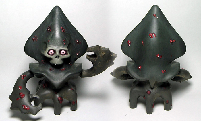 Since the release of Tim Stephson’s Grim Creeper a couple of weeks back, we’ve begun to see a few artists get to work on the platform… with the latest coming from our good friend Adam Pratt! Making a few subtle sculpt alterations including boils and teeth using plumber’s spackle, Adam then painted the “biomechanical space zombie” using a mixture of green, grey, red and white acrylics and weathering powder. No news as to whether this piece will be available (it’s currently winging its way back to Tim), so be sure to keep an eye on the newly opened Creeper Factory for developments…
