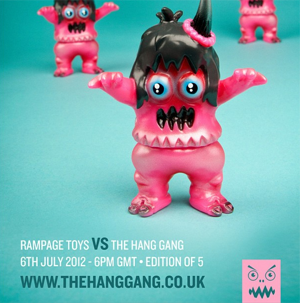 Always striving to make the world of sofubi more accessible to the UK art toy scene, The Hang Gang have secured yet another awesome toy for their store… the exclusive Ugly Unicorn from Rampage Toys! Cast in The Hang Gang’s signature pink, the figures have been finished in a mixture of black and red sprays with hand painted detailing. Limited to 5 pieces, the HG Ugly Unicorns will be available from the Hang Gang site next Friday (July 6th) at 6pm GMT for just £34.99 plus shipping…