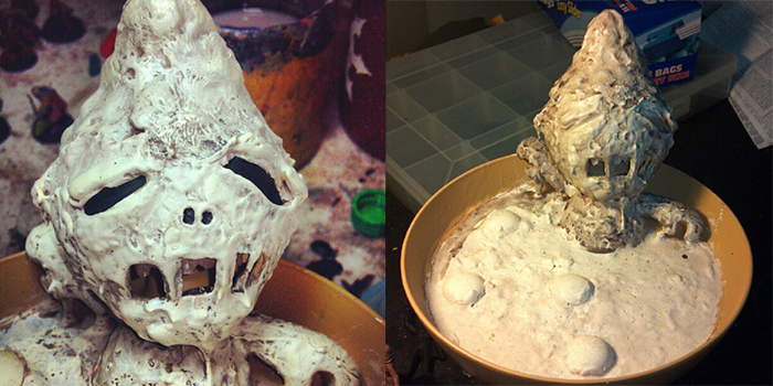 Any followers of Adam on Instagram would have noticed this guy pop up a few times over the past couple of months… well the stomach churning “Chowderhead” custom Munny is finally nearing completion! Originally created by giving the poor Munny a resin bath and building up various layers of plumber’s spackle to create the monstrosity you see before you. Paint application is due to begin today, so along with the addition of a slime encrusted spoon, plus REAL dried meal worms, this is shaping up to be Adam’s grossest piece yet… Created for the New England clothing label called HateMale, the custom will be released alongside their latest Chowderhead tee… expect both to touch down at some point in October…