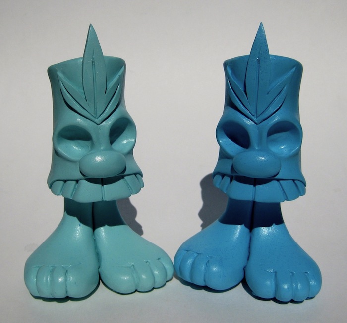 From up and coming artist, to respected customiser and now toy designer, JFury‘s debut resin release, the “JuJu Totems” are a real measure of how far he’s come over the past 12 months. Immaculately sculpted, the super-clean looking resins stand at an impressive 5″ tall, with the initial run coming in the form of the “Blue Shades Edition”. Limited to just 5 pieces coloured in varying hues of blue, the JuJu Totems are available from JFury’s store for just $40 each plus shipping. To coincide with the “Blue Shades”, J is also offering 10 DIY blank versions for $35 a piece…