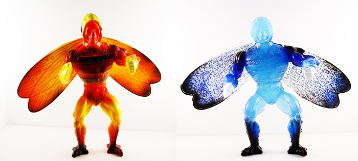 Following an appearance at last month’s Artomatic event in DC, resin wizard Giant Japanese Monster, Bad! has revealed he still has a few figures from the event left for sale! Pictured above are the latest resin simulations in the GJM,B! Rejects of Eternia line, “Off” Fire and Ice… Originally featuring here a couple of months back in a blank white resin, the Artomatic editions have been cast in a mixture of blue, red and glow-in-the-dark tints, featuring either “Fire” or “Ice” airbrushed detailing (Ice is still currently available). Priced at just $50 plus shipping, be sure to head over to the store quick to secure one of the remaining few…