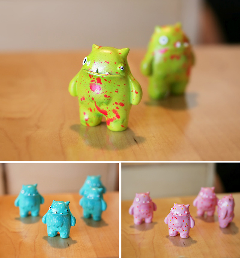 Jess Rollar over at Milky Robot kindly shares with us details of her latest resin figure, the adorable Ick! Unfortunately passing under our radar a couple of weeks back, the debut pink and neon green colourways went on to sell out within a matter of minutes… Well, the good news is that Jess is not the kind of person to rest on her laurels- the Arizona based artist already has another 3 variants ready for imminent release! Featuring a smoother re-moulded design, the hand cast and painted figures come in either Zombie (edition of 2), Sick or Yeti editions, limited to just 10 pieces in total. Due to go on sale for an estimated price of $40 plus shipping, expect to see the loveable creatures on the Milky Robot store today at 12pm Arizona Time…