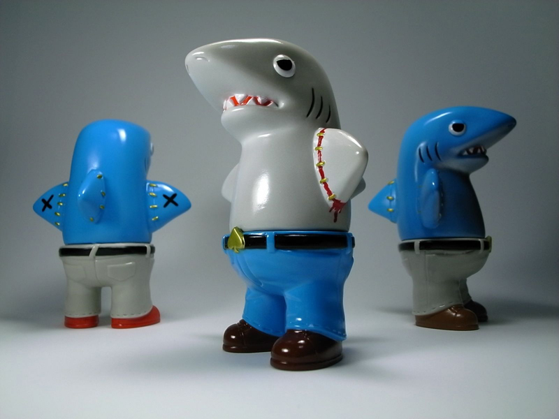 As part of their contribution to PangeaSeed’s touring art show and film festival, The Great West Coast Migration, Comet Debris are proud to reveal the latest incarnation of Sametan, the “Blood in the Water” edition! Cast in a clear red soft vinyl, the 5″ sofubi figure is available at all of the 6 shows on the tour, with a limited number hitting the Comet Debris store yesterday for just $40 plus shipping (50% of profits going directly to Pangea Seed). Stay tuned for a full reveal of the on-going Sametan Custom Show soon (Comet Debris entries pictured below), including works from Bwana Spoons, Cometdebris, Gargamel, Le Merde, Paul Kaiju, and Skinner…