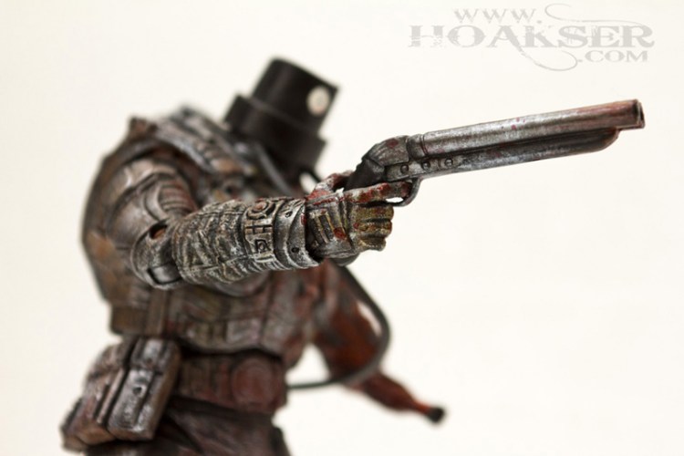 It’s been a while since we’ve heard anything from Hoakser with regards to the Dominant Species line, so it came with great pleasure this morning to find the latest member nestled in our inbox! Entitled “The Veteran”, the stunning figure has been kit-bashed, re-sculpted, burnt, painted, weathered and wired to form one of our favourite entries into the series yet. Unlike previous releases, “The Veteran” was originally an over-sized Gears of War figure, meaning this guy packs a whopping 11 points of articulation, shotgun/pouch accessories, plus a well-balanced, quality build. Due to land on his store soon for just £49 plus shipping, Hoakser has stated that the remaining unsold Dominant Species will also be available for a reduced price of £30-£40…