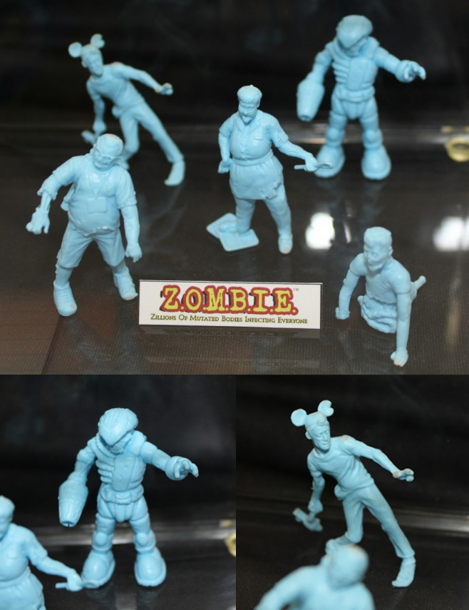 Joining the surprise announcement of OMFG’s Mega-Multiskull at SDCC last week, October Toys also revealed prototypes of the long-awaited Z.O.M.B.I.E.S Series 2! Once again coming in a set of 5 very different designs from October Toys’ George Gaspar, the M.U.S.C.L.E inspired Zombies even feature a decaying Glyos (bottom left)! A lot more balanced in terms of scale and appearance this time around, we simply can’t wait to get our grubby little mits on the plethora of different colourways that are likely to follow… No news on an exact release date or pricing, so be sure to keep track of the October Toys Z.O.M.B.I.E.S forum for further developments.