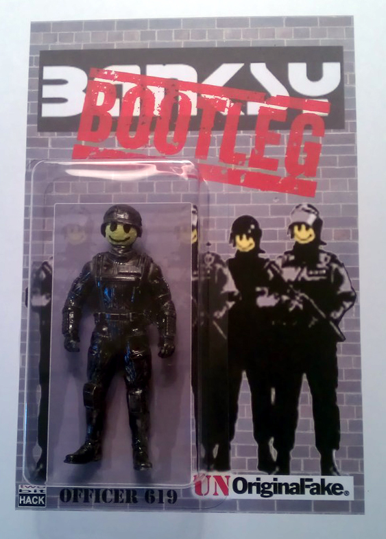 Following a sell-out debut at 3D Retro‘s SDCC booth last week, 2bitHACK is proud to announce the release of the Banksy Bootleg “Open Edition”. Identical to the original exclusive in all but packaging, the open run is due to come unsigned/numbered, with slogan “Have a nice day” replacing Officer 619… “Inspired” by Banksy’s Smiley Copper, the ingenious resin piece has been booted from a vintage action figure, coming hand cast and painted by 2bitHACK himself. Priced at just $40 plus shipping, be sure to head over to the 2bitHACK store now to secure yours…