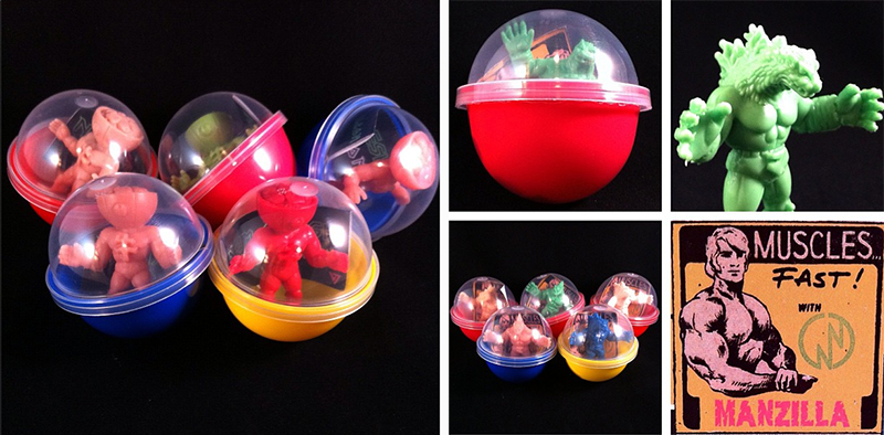 Judging by recent Instagram posts, it would appear that two Man-E-Toy favourites, both Nama-Niku and Healeymade, are gearing up for some very special exclusives for Bwana Spoons’ Grasshut! Whilst Healeymade has prepared another awesome batch of the recent L’Amour Supreme collab, the two-headed “Dino Bros”, Nama-Niku’s Tyler, along with the casting expertise of Eric Nilla, has produced a run of his most popular keshi/M.U.S.C.L.E customs… Featuring Manzilla, Chibi Ham, plus the last 5 Gyodomes (ever!), each has been sealed in a 70’s style capsule with vintage comic book insert. No news with regards to when and where everything will be available, so be sure to stay locked on the Grashut blog for further details soon…