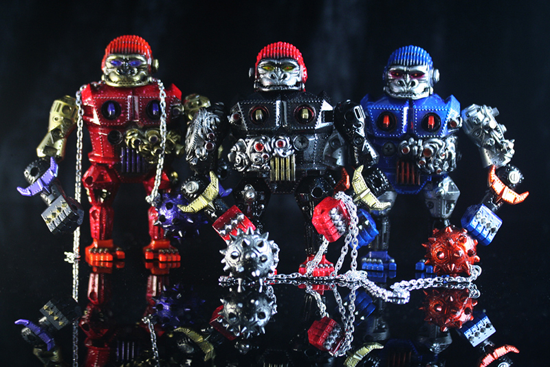 Todd Robertson aka Mechavirus continues his onslaught of dream collabs with the the reveal of the latest Bootleg Kongs from Toybot Studios! Cast in resin and coming with a massive 13 points of articulation, the Mecha Bootleg Kongs have been limited to just three breathtaking pieces, each adorned with Todd’s signature infusion of found objects, mecha and Monster Kolor. Priced at $300 each shipped (in the US), the Kongs are up for grabs through a lottery on the Toybot Studios blog here… Anyone interested in snagging one needs to head over before the close on Wednesday, 6pm PST.