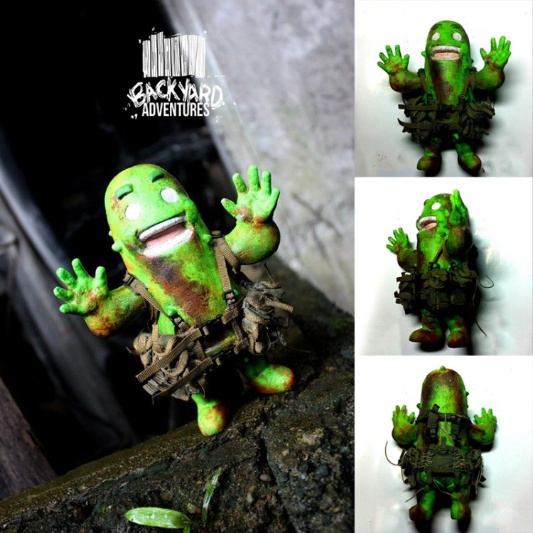 Design duo Robots & Cereals are proud to announce the release of their very first art toy, the Cactus Man! Featuring a wonderfully comical sculpt, the 6″ tall piece has been cast in solid resin, coming complete with a vivid green paint job and meticulously created mini military satchels and straps. The first of many characters to be released in the new “Backyard Adventures” line, Cactus Man has been limited to just 15 pieces worldwide, priced at a very reasonable $75 plus shipping. Anyone interested in picking one up should contact Robots & Cereals directly at robotandcereals@yahoo.com with any enquiries…