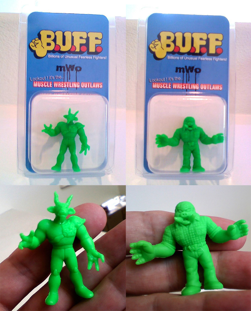 Following the massive restocking we featured here last week, Alec over at Muscle Things has unleashed yet more custom M.U.S.C.L.E goodness into the store in the form of a “Neon Green” Underling and Wookalar B.U.F.F! Masterfully kit-bashed and re-sculpted by Tyler of Nama-Niku, the beastly duo have been cast in Alec’s super-secret “Black Magic” rubber, coming in a retina burning 90’s inspired green. Priced at just $21 each plus shipping, the authentic blister carded figures are available though the Muscle Things store now…