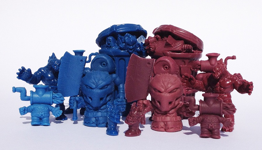 In celebration of our upcoming H.U.S.T.L.E 2-pack, ‘Ed Skworm Vs. Min-E-Face (yes, they’re still coming- more info next week), we’ve been lucky enough to team up with the mighty Eric Nilla and Tyler of Nama-Niku for a whole bunch of exclusive MAN-E-TOYS colourways! Featuring a plethora of Nama Nilla favourites including the Super Rare M.U.S.C.L.E Can, Manzilla 2, the Meatgrinder/Halfbaked 2-pack, Meatgrinder Chibi and Eric’s SD Splatterhouse Rick, the figures have been cast in a Man-E-Faces inspired blue, along with a couple of super rare purple chases… Due to be touching down in the MAN-E-TOYS store next Friday (August, 31st) at 9pm London time, we’ll be featuring a different figure each day in the build up to the release. Prices are still to be confirmed, but we’re shooting for a range between $10-$26 plus shipping…