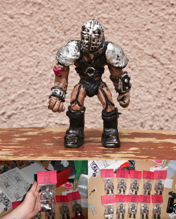 The Sucklord’s old intern, Weird Luke of Resin Trash, is proud to present his latest figure, the “Warrior of the Wasteland”, Lord Humungus… Based on the muscle bound, mask wearing gang leader from cult 80’s classic Road Warrior (known as Mad Max 2 here in the UK), the 100% handmade resin has been forged by Luke in a basement in Gowanus, Brooklyn, N.Y.C. Limited to just 10 pieces, the bagged and headed brute is available through the Resin Trash store now for just $30 plus shipping…