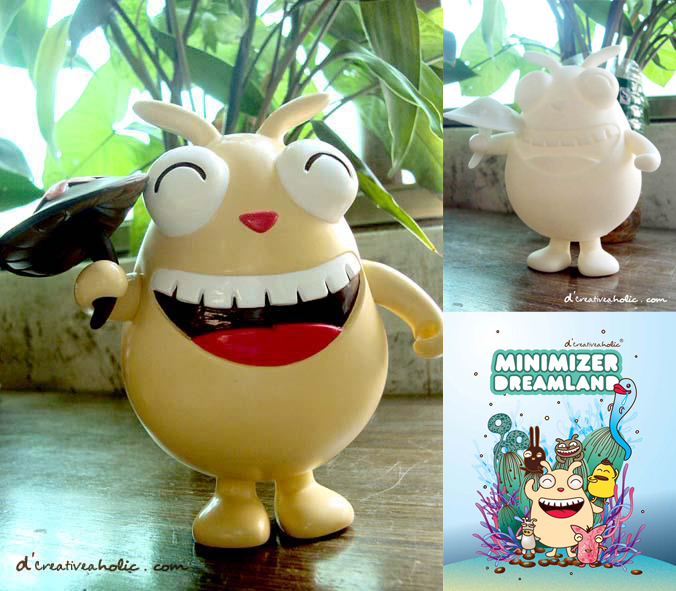 One of the art toy scene’s hottest collaborators right now, Chris ‘Creo’ Alexander is proud to present yet another team-up, this time on D’Creativeaholic’s ever-so-cute Lofing… Part of a series of 7 characters from the artist’s fictional world, “Minimizer Dreamland”, the vinyl figure has finally gone into prototyping after a year on the drawing board. Pictured here as a fully and unpainted test pull, the 6″ tall figure comes with 4 points of articulation and removable mushroom accessory (Lofing’s prize possession!). Making an appearance at the D’Creativeaholic STGCC booth (Artist’s Ally #G23) this weekend (September 1st and 2nd), Lofing should be heading into production soon… expect more news on this intriguing figure as soon as we get it!