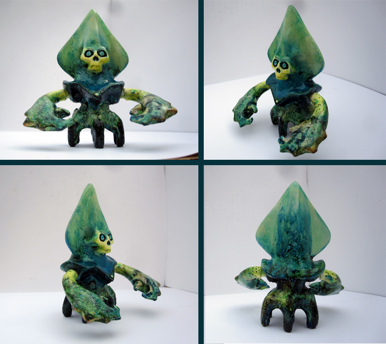 It’s been a little while since we last featured the Grim Creepers from Tim Stephson, so it came with great pleasure today to find Eeks‘ first custom of the figure in our inbox today… Entitled “Crusty”, the underwater dwelling Creeper has been given a suitably aqua-inspired paint job, featuring a mixture of vivid blues, greens and yellows. Priced at just $50 plus shipping, the hand cast resin figure even comes with not one, but two exclusive Creeper mini prints (one pictured above)… Head over to the Eeks store now if you’re interested- we can’t see this little fella being around for long! Want to know more about the Grim Creeper? Then check out our previous posts here.