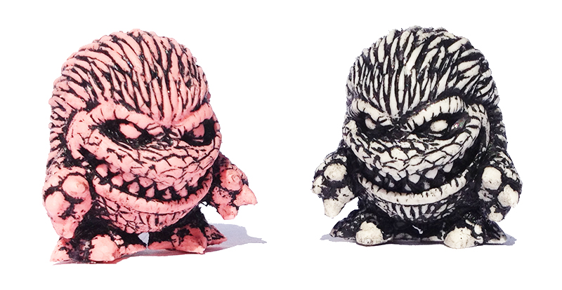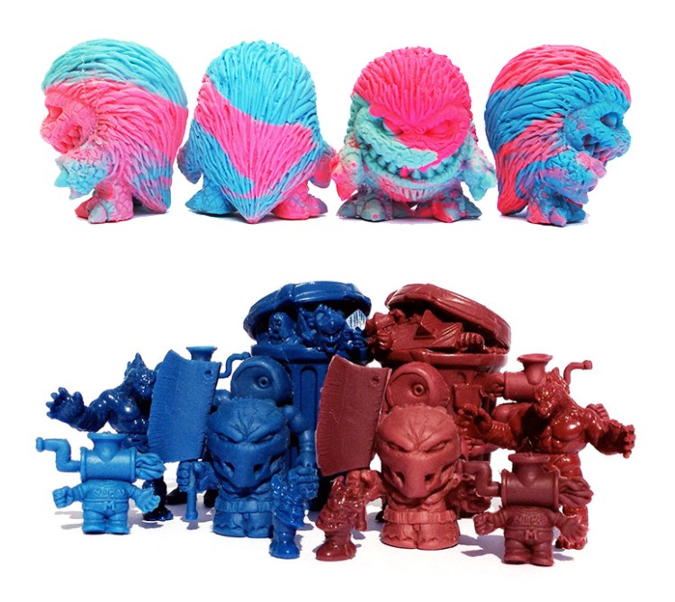 As if you guys haven’t already gathered, we’re preparing to launch a shed-load of new stock on the Man-E-Toys store later tonight! Joining the various Nama x Nilla figures that we’ve been revealing over the past week (check them all out here), we will also be adding more marbled, neon and flesh “Critters inspired” mini figures, plus a very limited run of “Something’s OFF” customs… Created using the many different discarded colour tests we’ve acquired (all perfectly cast, may I add!), each “SO” Crite has been given a new lease of life with the aid of a stunning black acrylic rub from Tru:Tek. Limited to just 10 pieces in a variety of different base colours including pink, white and green, each comes with the same hand drawn header and insert card as the standard release for just $15 plus shipping… Touching down in-store at 9pm tonight (London time), be sure to set your watch if anything’s caught your eye… all figures have been produced in EXTREMELY limited quantities!