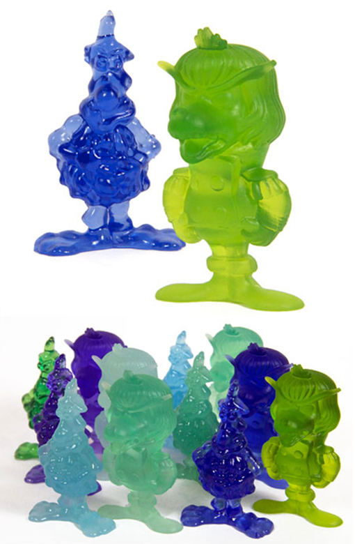 Sorry guys! A little late on this one, but here goes… Featured here last month for private sale only, Healeymade‘s Sea Mod and Sogmoore are now available for general sale as myplasticheart exclusives! Bootlegged from the iconic Capatain Crunch and Soggy cereal toys, the little guys have been cast in a multitude of beautiful clear resins, finished in either matt or clear gloss. Both featuring modifications from their original design, the Captain has had his head replaced with an unidentified character (can you tell who it is?), whilst Soggy has had additional sculpting around the face to replace the original flat, stickered design- hence the name Sogmoore, a Soggy with a bit more! Sold as blind-bagged 2 packs, the pair are available right here for just $44.99 plus shipping…