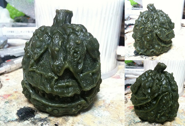 Spotted over at KFHC, Mutant Vinyl Hardcore has revealed the final wax sculpt for his latest creation, the Sam Heinous head! Inspired by the Silver Shamrock pumpkin mask from Halloween 3, the beautifully detailed sculpt adds worms, boils and a sharp set of teeth to bring the design in-line with MVH’s previous work. Due to be sold as a standalone, we’re guessing the head will be easily interchangeable with the DX Dokruo Sludge Demon kaiju… No news of an exact release date at the moment, so be sure to stay locked on the MVH site over the coming months for any further developments.