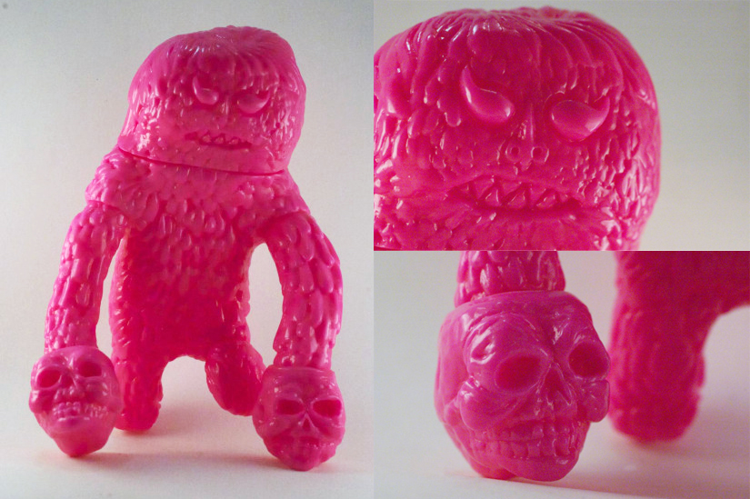 Fresh out of his top secret lab hidden in the Swiss Alps, WaoToyz is proud to present his latest sofubi monstrosity, the Forest Monsta! Standing at an impressive 6″ tall, the “Wisdom Forest” inhabitant has been produced by Lulubell Toys in a hot pink soft vinyl. Featuring 4 points of articulation (head, arms and leg), the clincher for us has got to be the skull hands… which can be removed and attached to the legs as feet! Coming with a suggested retail of $75, expect to see the Forest Monsta available soon… Anyone looking to stock the beast should head over to the DKE Toys site here with any enquiries.