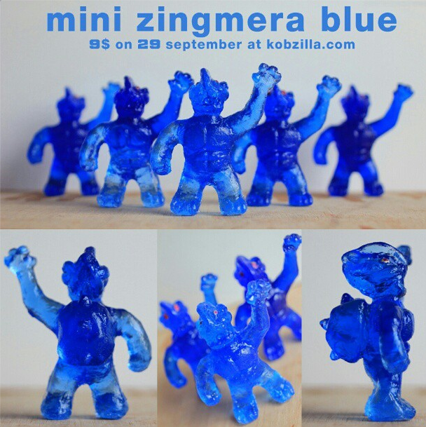 After purchasing Kobzilla‘s awesome Kruzilla resin a while back, we had high hopes that the Thailand based artist would translate the winged beast into mini form… Well, he’s gone one better than that with the reveal of an all-new character in condensed-form, the Mini Zingmera Blue! Inspired by the mythical Thai lion “Singha”, the great “Gamera Turtle Kaiju”, and the Japanese fortune cat “Maneki-Neko” (see the raised left paw?!!), the 3″ beast has been hand cast in a vivid clear blue resin with embedded pink detailing. Priced at just $9 plus shipping, Mini Zingmera “Blue” will be touching down in the Kobzilla store on Spetember 29th… Stay tuned for more colourways soon!