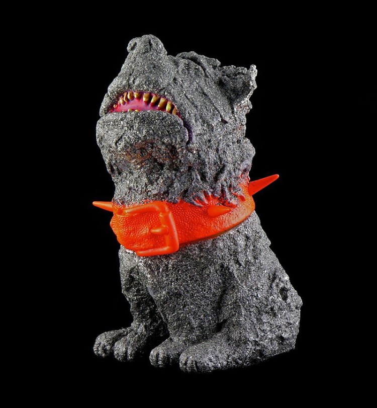 The ever elusive Kaiju Coup has just revealed details of the latest Warui Inu iteration, the stunning “Stoned” edition. Once again produced by Medicom Toys, the gruesome canine has been cast in a mottled granite-style soft vinyl, coming with the signature spiked neon colar. Taking cue from the recent Plaseebo SDCC collaboration, the figure also glows in the dark, with Kaiju Coup adding an embedded colour changing LED unit for good measure… Once again for sale via lottery, anyone interested in picking up the hound is going to need to send over their name, address and e-mail to kaijucoup@gmail.com by Saturday, September 22nd. Pricing has been confirmed as the standard $220 plus shipping…