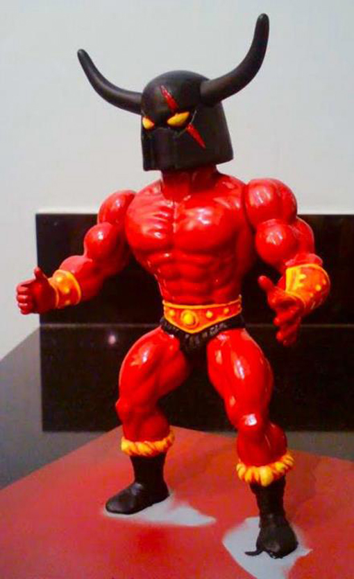 With NYCC 2012 just around the corner, Ben Spencer of Galaxxor fame has been putting the final touches to his exclusive figure for the event… the “Infernicus” Cyborg Space Barbarian! Featuring the signature horned CSB head sculpted by Ben and prototyped/produced by Marty “The Godbeast” Hansen, the vintage MOTU figure custom has been painted in an eye catching red, black and yellow colour scheme. One of our favourite designs from the series yet, the extra paint rub around the belt and wrist guards, as well as the addition of a scar across the left eye really help to make the piece pop… No news as to pricing or availability at the moment, so be sure to keep track of the Galaxxor blog here for more details soon.