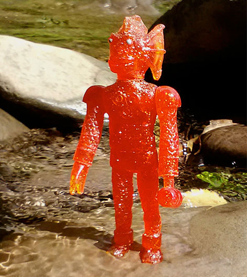 Filmmaker, writer and artist James Felix McKenney is back with his latest Sea-Borg figure, the NYCC exclusive “Gold” edition! A glittery orange version of the original “Creature From the Black Lagoon” inspired resin, “Gold” comes hand cast by McKenney with battle hammer arm accessory. Limited to a run of 20 pieces, Sea-Borg Gold will be available at the MonsterPants booth (#3116) for just $35 each, with any remaining heading to the store in later October… Joining Gold, McKenney will also be unveiling another 6 all-new Sea-Borg designs based on 2 recent sculpts- stay tuned for a full reveal as we get closer to the event!
