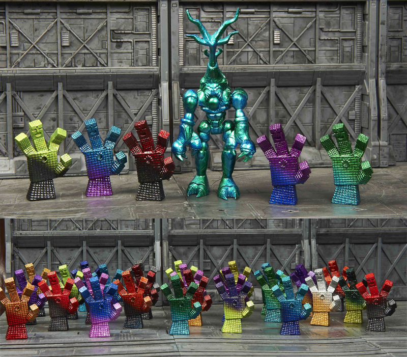 Joining Galaxxor‘s Infernicus, Marty “The Godbeast” Hansen has revealed that the original M.U.S.C.L.E custom, “Clawshine”, will also be making an appearance at this year’s NYCC, with the announcement of the “Monster Kolor” series! Sculpted by Jason Frailey, prototyped/produced by Marty and painted in a variety of awesome Monster Kolor fades by “mikemz”, the figure has been limited to 25 one-off pieces, offered up on a first-come first-serve basis for just $35 each. Stay tuned for a final reveal of Marty’s other NYCC exclusive, the “Infernicus CSB” with Ben Spencer, sometime soon…