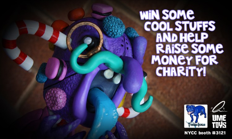 Joining a whole host of exclusives and future project reveals (including one or two in conjunction with us!), Rich over at UME Toys has announced that he will also be organising a very special raffle… the prize? The amazing Basset DKay one-off sculpt (originally posted here), PLUS a signed piece of original artwork! To be in with a chance of bagging the awesome figure, be sure to head down to the Tenacious Toys booth (#3121) and bag your ticket. Rich has stated that all the proceeds raised will be going to the Susan G Komen cancer research charity… Fancy getting the man in questions autograph, or even a quick scribble? Then you’ll be glad to know that Rich will be on hand at the Tenacious Toys booth from 3pm Saturday 13th, and at the BIG KEV’S GEEK STUFF booth (#3261) along with the talented Argonauts Resins and Jelly Empire all Sunday. Stay tuned for more EXCLUSIVE reveals very soon!