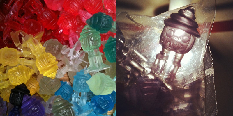 The Rampage Toys x Peter Kato Super Pachi Micro Cupcake Kaiju!// Last but by no means least, Peter is proud to present his latest collaboration with Rampage Toys, the Super Pachi Micro Cupcake Kaiju! The latest in Rampage’s long line of cupcake themed characters, the figure has been sculpted by Jon Malmstedt and hand cast by Peter in a huge selection of clear tinted resins. Little is known about how these little guys will be finished, so be sure to keep track of the Rampage twitter feed for more reveals soon!