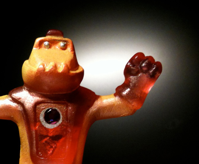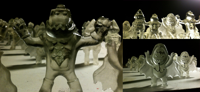The One Year Anniversary Editions// Originally debuting at last year’s NYCC, Peter has been working on a special anniversary edition of his three most popular characters; Turtle Tetsujin, FrightBite & Kawako… Cast in a Dark Crystal style mix of clear resin with a hint of black, the figures have been produced in very limited numbers (just 5 TTs and 10 of both FB and Kawako). To be sold exclusively through the Toy Tokyo booth in honour of the original figures, the Anniversary Editions have been priced at $20 for Turtle Tetsujin and just $10 for both Fright Bite and Kawako…