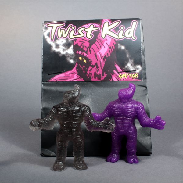We originally posted about Geoff Maxfield‘s awesome “Twist Kid” a couple of months back, and whilst the figure has now been available to purchase in Geoff’s store for a while now (still need to make that purchase!), we are pleased to reveal that an exclusive run has also been created for premier designer toy emporium, Rotofugi! The first of 4 characters planned for the “Neo Fighters” universe, the M.U.S.C.L.E scaled original sculpt was prototyped/produced by Marty “The Godbeast” Hansen in a variety of blind bagged colours including GITD’s, metallics, clears, bi-colors, and even thermal-color change! Priced at just $15, the bagged and headed figure can be found either online here or at Rotofugi now…