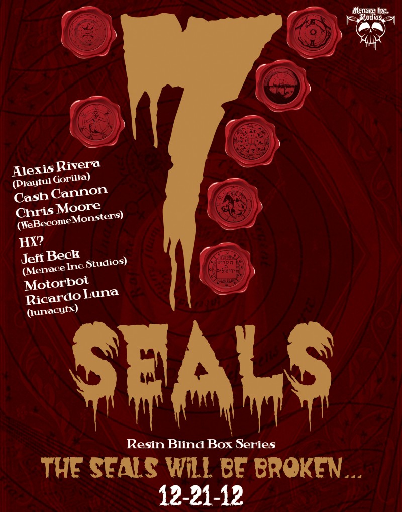 Fresh from the huge success that was “The Rise of the Samhain“, Jeff Beck over at Menace Inc teases us with the first promo image from the studio’s debut collaborative art toy project… the 7 Seals! Due to feature some of the resin scene’s finest including Cash Cannon, We Become Monsters, Motorbot, and of course Jeff himself, the series is set to come blind boxed, with a Christmas release of December 21st. No news as of yet as to what will be featuring in the series (although we’re guessing wax seal designs must feature!), so be sure to stay tuned for more reveals and release info to follow very soon!