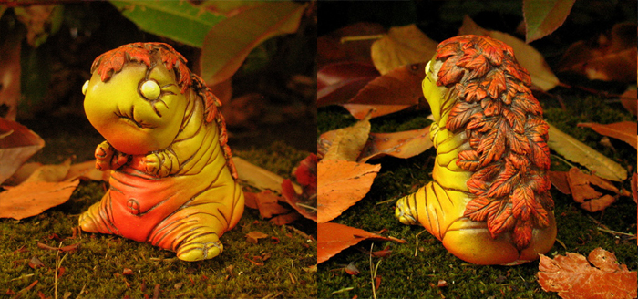Josh “F Plus” Pearce is proud to reveal the latest incarnation of his popular Fiend character, the gorgeous “Autumnal” edition… Standing at just 2.5″ tall, the adorable little critter has been hand sculpt and cast in resin by Josh (check out that maine of leaves!), coming meticulously painted in a mixture of fall inspired brown washes, burnt yellows and subtle orange fades. Limited to just 13 pieces this time around, the Autumnal Fiends are available through the F Plus store now for just $45 a piece…