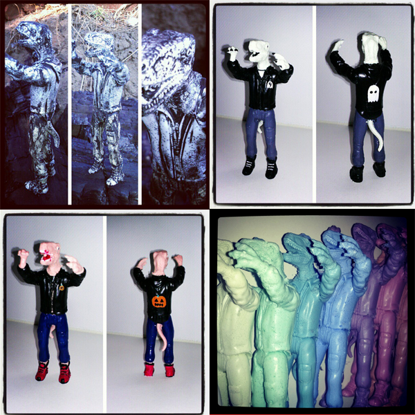 Whilst it was sad to hear that Jesse Narens aka Ghost&Flower would be retiring the hugely popular Stegoforest resin a few months back, we’ve been sitting tight to see what the talented artist would come up with next… wel the wait is finally over, as Jesse proudly introduces his first bootleg action figure series, The Creeps! Designed, kit-bashed and sculpted by the man himself, production duties have been handed over to Bobby Beast creator I Am The Fourth. Coming in a variety of different one-off paint schemes including the leather jacket wearing thugs pictured, The Creeps will be limited to just 13 pieces with a price tag of $66.66 (inc. US shipping)… Heading to the Jesse Narens store this halloween (October 31st) at Noon PST, expect each signed and numbered Creep to come packed with a very special Trick-Or-Treat goodie bag. Head over to the dedicated Creeps page here for more information closer to the drop…