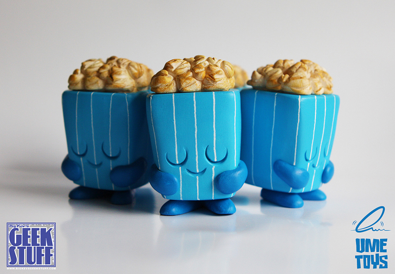 Originally previewed just last Friday, Richard Page reveals the limited edition first run of UME Toys‘ latest addition, the adorable Pepper Popcorn! Created exclusively for Big Kev’s Geek Stuff‘s soon-to-be-opened online store, the 8cm tall figure has been meticulously painted in a stripy blue and white design, coming complete with removable popcorn hair! Limited to just 5 pieces this time around, the bagged, headed, signed and numbered Pepper’s will be available shortly… Keep track of the Big Kev’s Geek Stuff blog here for further developments soon!