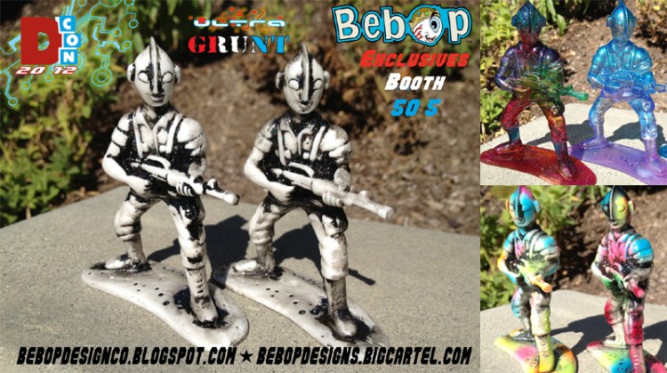 Following their debut last year, Keith Fulmis aka Bebop‘s Ultra-Grunts are poised for a return at Designer Con next week! Designed by Keith, the striking homage to both Kaiju and classic American toys has been cast in a mixture of clear and opaque resins by Cliff of Monstrehero, each coming complete in a variety of Monster Kolor sprays and finishes. Limited to 30 pieces this time around, the 4″ tall Ultra-Grunts will be available at the Bebop Designs booth (#505) for just $25 each. Anyone unable to attend the con will be glad to know that Keith will also be accepting online orders on the day of the show (November 3rd) through direct e-mail at Keithfulmis.studios@gmail.com…