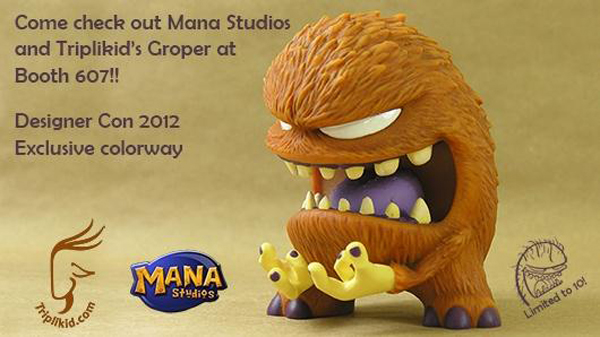 Following a hugely successful reception at NYCC last month, Triplikid has enlisted the talents of Mana Studios for the latest painted run of debut resin, the Groper… this time in a rather awesome orange/purple/yellow Designer Con exclusive colourway! Limited to just 10 pieces, the massively detailed, multi-part figure will be making an appearance at booth #607. No news on pricing as of yet, but we suggest heading down to the booth pretty quick if you want any kind of chance in grabbing one… Stay tuned for more Groper news soon, including the reveal of a very special custom from our good friend Small Angry Monster!