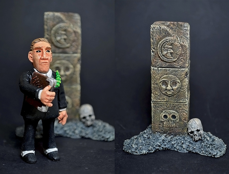 The first of 3 custom pieces from Singapore based artist Daniel Yu that we’ll be featuring this week, H.P. Lovecraft is a fitting homage to one of the artist’s most inspirational authors. Once again created from just a lowly Playmobil figure and Epoxy, the beautifully sculpted piece is set off by some wonderful additions- namely the subtle tentacle poking out of Lovecraft’s top pocket, and the amazing companion totem that features symbols from the authors work… truly breathtaking! Unfortunately, this piece was created for Daniel’s private collection, so if you’re looking to have a similar piece created, your best bet is to hit him up through his blog here with any enquiries.