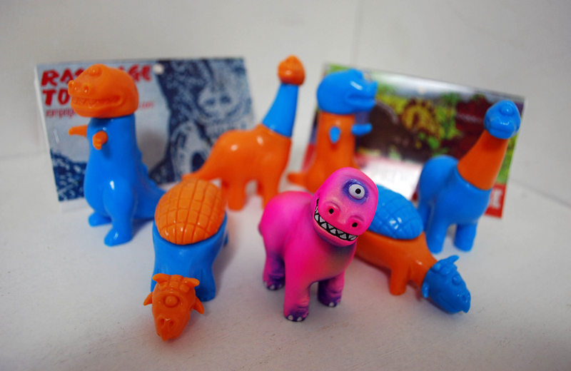 After a slight delay, Jon over at Rampage Toys has finally managed to fully restock the store with a whole host of goodies from the past 3 months of conventions and festivals! Featuring a whole host of exclusive painted and unpainted Ugly Unicorns, various sofubi customs, and Pachi Cake phone straps, our favourite has to be the debut of the “Single Dino Super Secret Lucky Bag”… Coming in a ghetto gatch-gacha style run of orange/blue mixed part Cyclops Dinos, the blind bag series has been limited to just 8 figures with one metallic pink painted chase. Bagged with a new header designed by the ever talented IV, the Secret Lucky Bags are available for a super-lucky price of just $13.13 plus shipping… Be sure to head over to the store quick as many of the items are running seriously low on stock already!