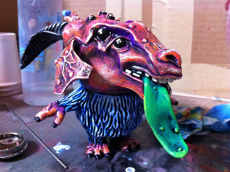 Jon over at Rampage Toys kindly shares with us his latest custom commission, the breathtaking Shubler mash-up! Combining 2 of our most highly desired sofubis, the recent Shub Zeroth and Splurrt’s Diggler, the beautiful piece has been hand finished in Jon’s signature mix of vivid gouache brush work and meticulous black rubs… leaving us all shades of green! Unfortunately due to the extremely limited nature of both Shub and Diggler, it’s unlikely that we’ll see anything like the Shubler again, but if you do happen to be lucky enough to come across the pair (or any other sofubi for that matter!) and are looking for the Rampage treatment, be sure to hit Jon up through the blog here with any enquiries…
