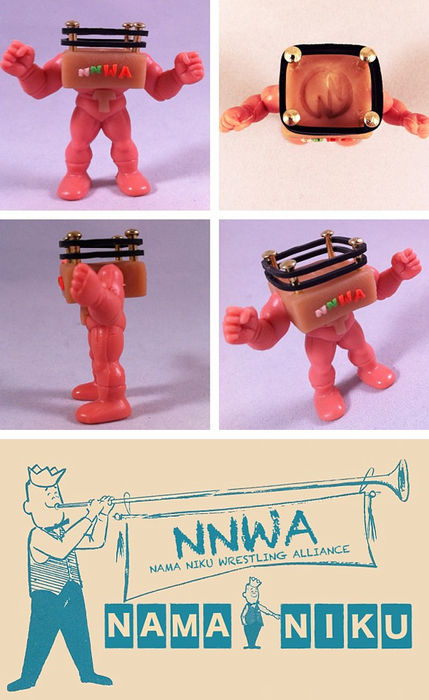 Ahead of a full reveal of Nama-Niku‘s H.U.S.T.L.E ‘Artist Series’ entry later this week, we bring you the latest figure in his ever growing line of Namakeshis… the NNWA “Top Rope” wrestling ring! As with all of Nama-Niku’s custom output recently, the level of creativity and professionalism here is truly outstanding, once again leaving us wondering- why hasn’t anyone thought of this before?! Featuring a meticulously sculpted wrestling ring torso with signature NN branding, the 1.5″ tall figure is due to come cast in a high quality flexible rubber complete with mini rubber band ropes… Set to become a Rampage Toys shop exclusive in the near future (more on that little venture soon!), expect more news on “Top Rope” as soon as we get it.
