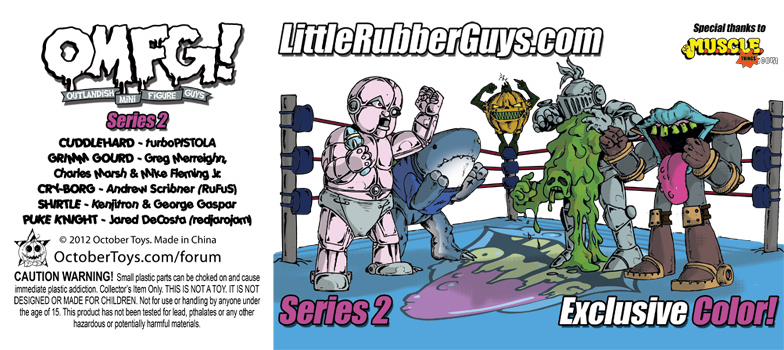 As promised in our OMFG Series 2 update last week, we bring you details of a very special set of exclusives that have been lined up for premium minifigure site Little Rubber Guys… This time around securing not 1 but a whopping 4 different colourways, LRG’s exclusives will be coming in the standard neon green, a Glyos inspired metallic green and purple, plus the original ‘test shot’ plum which will also see a rerelease of OMFG Series 1 as well… All these choices would be more than enough for even the most hardcore of OMFG collectors, but LRG have something else up their sleeve to truly secure the deal- authentic trash can style packaging with shrink wrapped printed sleeves! Offering up a different design for each of the 4 choices (plus the plum OMFG 1), the Eric Nilla illustrated cans will ONLY be available to purchasers of the LRG sets, so be sure to get in quick before they all disappear! Currently available to pre-order through the LRG store here, all 5 piece sets have been priced at just $15 plus shipping… Anyone looking to grab all 5 cans will be glad to know that they’ll also secure you the chance of winning 1 of 5 custom OMFG figures- what more incentive do you need?! Stay tuned for more OMFG exclusive reveals soon.