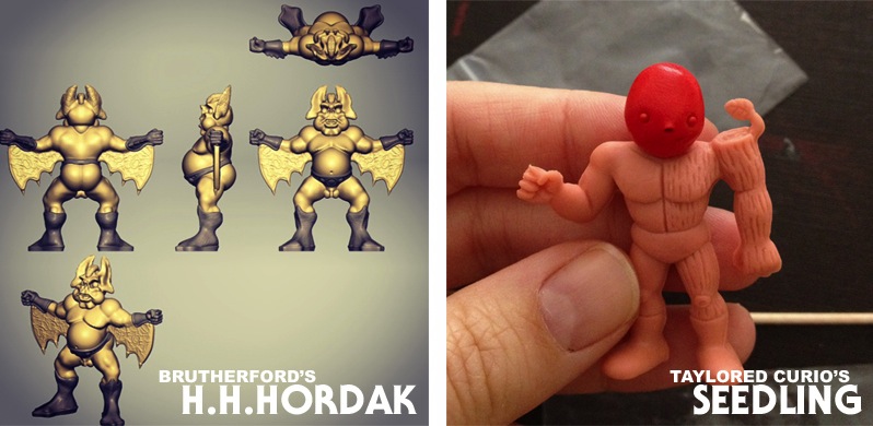 Yet another design that featured in our first reveal, Brutherford Industries‘ Hordak inspired bat figure has now been finalised, with a selection of 3D prints currently on their way to the UK. Now coming with the awesome title “Hungry Hungry Hordak”, the rotund beast has got to be one of our favourite entries yet… again, expect test shots soon! Last but by no means least, we bring you one of our most anticipated figure designs, the Seedling Warrior from Taylored Curiosities… Featuring TC’s signature micro resin character (with what appears to be the eyes of a Monster Embryo!), the custom is due to come with the obligatory Seedling sprout and leaves- although it’s still undecided as to whether these will come in felt or rubber… A rubber mini/plush mash-up would definitely be a first!